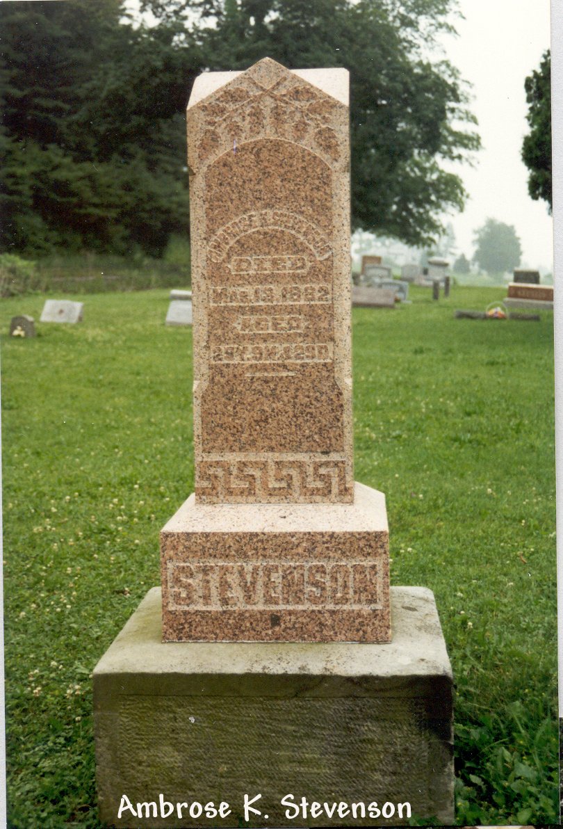 Name Born Died Misc. Submitter -- - - - - Nalley, Ronald L. 1/6/1971 1/24/1971 gr-s/o J. & E. Nebergall -- Nebergall, Edna M. 1918 1999 w/o John L. -- Nebergall, John L. 1917 1987 h/o Edna M. -- Neely, Clifford M. 1888 1918 - -- Neely, Lena 1858 1940 - -- Nelson, Elmer - - Veteran - Newcomer, Bessie 1892 1912 - -- Newcomer, Carl R. 1899 1975 h/o Naomi -- Newcomer, Catherine 1859 1927 w/o Lewis W. -- Newcomer, Dorothy May 1908 1912 - -- Newcomer, Ida Belle 11/4/1896 3/2/1906 w/o L.W. & Catherin -- Newcomer, Janet Irene 1939 1939 - -- Newcomer, Lewis W. 1850 1922 h/o Catherine -- Newcomer, Mary Maude 1881 1960 - -- Newcomer, Naomi 1902 1952 w/o Carl R. -- Newcomer, William L. 1877 1950 - -- Newman, Nohl V. 8/17/1915 12/4/1984 WWII; h/o Bonnie J. -- Oney, Elizabeth E. 1922 1944 - -- Oney, Hazel 1894 1987 w/o Vardie -- Oney, Vardie 1897 1993 h/o Hazel -- Owens, Belle 1886 1961 w/o Earnest -- Owens, Bertie 1899 1901 - -- Owens, Carl Hubert 12/14/1933 10/6/1952 Korea -- Owens, Delores Funk 1935 11/15/1957 Died at Columbus Univ. Hosp.; w/o Harry; Resided at Greenwich, O. MNJ 11/15/1957 Owens, Earl L. 1909 1951 h/o Mary M. -- Owens, Earnest 1882 1954 h/o Belle -- Owens, Eva M. 1901 1971 w/o Lester L. -- Owens, Forest C. 1895 1917 - -- Owens, Harold C. 1918 1929 - -- Owens, Henrietta 1902 1996 w/o Ora J. -- Owens, Howard C. 1897 1967 - -- Owens, James 1849 1932 h/o Josephine -- Owens, Josephine 1858 1943 w/o James -- Owens, Lester L. 1893 1977 h/o Eva M. -- Owens, Lester W. 1906 1922 - -- Owens, Mary M. 1910 1994 w/o Earl L. -- Owens, Nancy 5/16/1839 12/13/1913 - -- Owens, Ora J. 1891 1983 h/o Henrietta -- Owens, Russell E. - 4/3/1924 5M, 5D -- Owens, Vernon J. 1/20/1925 6/15/1976 WWII -- Owens, Vernon J. Sr. 1902 1976 h/o Viva A. -- Owens, Viva A. 1903 1979 w/o Vernon Sr. -- Owens, William Edward 4/11/1921 11/26/1976 WWII -- Palmer, Grace L. White 1879 1950 w/o Charles C. -- Paramore, Camilla J. 8/23/1938 3/24/2001 w/o Glenn E. -- Paramore, Dwight Burton 9/21/1935 1/26/1999 - -- Paramore, Emory B. 7/30/1910 11/20/1998 s/o Zell & Lillian; h/o Maxine -- Paramore, Maxine E. 1914 1991 w/o Emory B. -- Parcher, John 1817 1904 h/o Nancy K. -- Parcher, Nancy K. 1818 1904 w/o John -- Patterson, Augusta Stevenson 1857 1904 w/o Judson I. [additional photo]; d/o John Stevenson -- Patterson, Judson I. 1854 1936 w/o Augusta S. [additional photo] -- Pflieger, Betty J. 1928 1970 w/o Francis J. -- Pickworth, Ada 1908 1990 w/o Paul K. -- Pickworth, Jerry Lee 3/8/1946 3/22/1967 Vietnam -- Pickworth, Paul K. 1906 1970 h/o Ada -- Pittinger, Martha O. - 5/2/1854 43y, 3m, 9d; w/o Wm. DWG Pittenger, Sarah Ann - 11/13/1854 23y, 8m, 3d; d/o Wm. & M.O. AEA / DWG Pittenger, Willard H. - 2/18/1851 - -- Pittinger, William H. - 2/8/1857 3y, 8m, 20d; s/o P. & M. DWG Plank, Frederick L. 4/3/1918 7/13/1991 h/o Martha B. -- Plank, James Levi 1/25/1952 1/28/1952 - -- Ramsay, Robbie Ray 12/21/1969 5/28/1987 - -- Reber, Dorothy Ellen 7/21/1921 3/20/2000 - -- Reger, James Dennis 1/31/1947 3/29/1985 Vietnam; s/o Waldo & Ruth Linda Reger, Ruth L. 8/29/1920 8/11/1968 w/o Waldo Linda Reger, Waldo J. 3/09/1916 9/16/2003 h/o Ruth L. Linda Richardson, George M. - 9/16/1881 24Y, 4D -- Richardson, James M. - 9/27/1896 75Y, 3M, 25D; h/o Maria -- Richardson, Maria - 9/8/1857 31y; w/o James M. AEA / DWG Richardson, Nancy - 6/5/1885 78Y; w/o Nelson -- Richardson, Nelson - 6/19/1877 58y DWG Richardson, Rachel - 8/6/1854 35y; w/o Nelson DWG / AEA Richardson, Vienna C. - 5/28/1850 33Y; d/o J.M. & M. -- Ringler, Luke Jacob - 10/6/1999 s/o Mark & Becky -- Robison, Anne - 2/17/1860 17, 8m, 19d; d/o J. & R. DWG / AEA Robison, Franklin E. - 3/2/1860 7m, 20d; s/o G.W. & M.E. DWG Robison, George W. 10/4/1832 6/30/1898 h/o Mary E. AEA / DWG Robison, Joshua F. - 11/12/1866 27y, 6m, 7d; s/o J. & R.; Veteran DWG Robison, Mary A. - 9/19/1856 2y, 2m, 12d DWG Robison, Mary E. 9/15/1836 8/31/1902 w/o George W. -- Robison, Maude 1880 1938 w/o Thomas R. DWG Robison, Polly - 11/12/1866 50y, 11m, 9d; d/o J. & R. DWG / SMB Robison, Rebecca - 9/10/1856 1m, 6d; d/o J. S. & M. DWG Robison, Thomas R. 1866 1932 h/o Maude -- Ryland, Lois E. 5/23/1922 1/26/1997 w/o Willis -- Sampsel, Arthur P. 1881 1963 h/o Maggie -- Sampsel, Maggie 1881 1957 w/o Arthur P. -- Samsel, David D. 6/12/1845 1/8/1930 h/o Margaret E. -- Samsel, Laurabelle Ashbrook 1909 1993 w/o Leland C. -- Samsel, Leland Chamberlain 1905 1977 h/o Laura A. -- Samsel, Margaret E. 6/27/1849 4/27/1926 w/o David D. -- Schlaufman, Andrew 2/2/1903 5/9/1976 h/o Katherine B. -- Schlaufman, Katherine B. 9/17/1906 12/2/1993 w/o Andrew -- Scroggie, Elizabeth J. 1856 1904 - -- Shoemaker, Anna 1877 1965 - -- Shriver, Donald 1908 1917 - -- Shriver, Verda Bell 1882 1915 - -- Siebert, Flora 6/8/1894 5/18/1977 h/o Francis W. -- Siebert, Francis W. 12/20/1887 7/2/1962 h/o Flora -- Siebert, Kenneth L. 10/31/1925 5/31/1996 - -- Siebert, Pauline C. 8/7/1927 8/17/1999 - -- Smith, Anna M. 1862 1960 - -- Smith, Emma A. 1890 1912 - -- Smith, Marguerite 1903 1996 w/o Warren L. -- Smith, Mark T. 1857 1922 - -- Smith, Warren L. 1899 1973 h/o Marguerite -- Stentz, Dennis W. 3/13/1960 12/11/1995 - -- Stentz, Isaac David 5/16/1991 5/3/2001 - -- Stevenson, Alba - 11/10/1854 3y, 3m, 11d; s/o J. & I.J. DWG Stevenson, Ambrose K. - 3/13/ 1882 29Y, 9M, 29D Jan Stevenson, Clara 10/22/1845 -- w/o Levi -- Stevenson, Elizabeth - 1/10/1859 15Y, 9m, 24d; d/o J. & L.J. (or d/o J. & I.J.) DWG / AEA Stevenson, John - 11/13/1891 81Y, 21D; h/o Jane E. Jan Stevenson, John G. - 6/11/1861 15y, 5m, 11d; s/o J. & I.J. DWG Stevenson, Jane E. - 8/20/ 1883 64Y, 3M, 2D; w/o John Jan Stevenson, Levi 4/3/1846 8/8/1907 h/o Clara -- Stevenson, Nancy Jane - 12/30/1865 23Y, 6M, 25D; d/o J. & I.J. DWG / AEA Stout, Clara 1869 1954 w/o Weden S. -- Stout, Weden S. 1863 1941 h/o Clara -- Stratton, Mary Logan - 6/24/1884 in her 92nd. year -- Switzer, Shane R. 1963 1978 - -- Taylor, Edna M. 1908 1988 w/o Marion W. -- Taylor, Leda I. 1884 1969 w/o Walter H. -- Taylor, Marion W. 1907 19