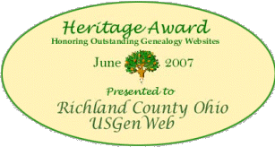 the Richland Co., Ohio site, part of the OHGenWeb Project.  Please take awhile to explore the data here at the site.  We have over 5,500 pages of data for you to view.  Use the category links to the left, or use the What's New? links to see the latest info. added to the site.